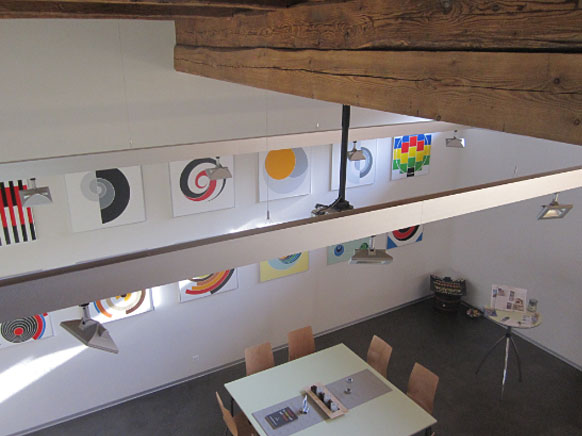 Konkrete konstruktive Kunst schmückt die Wände der Kunstschür.
