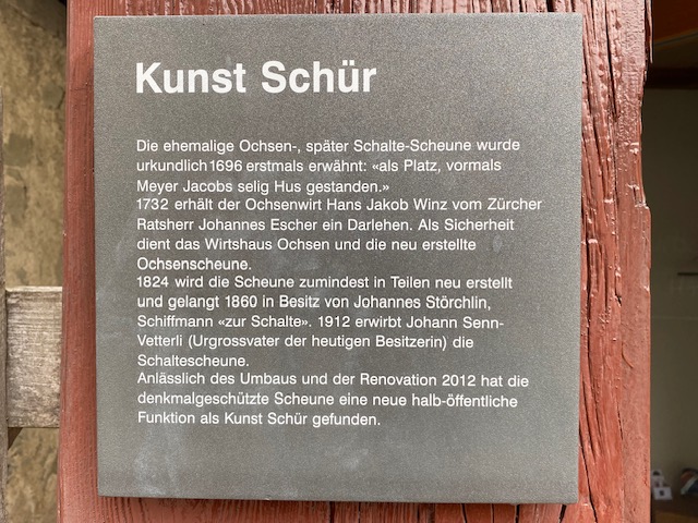 2011/12 wurde die denkmalgeschützte Scheune aufwendig restauriert und fand danach eine neue halböffentliche Funktion als Kunstschür. Einstufung ISOS «Von nationaler Bedeutung».